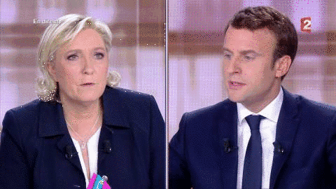 然后,再让我们看看马克龙。个人风格与自己的妻子相似的他,自打参加选举以来,穿着的西装外套基本都逃不出藏蓝色——黑色之间的选择。