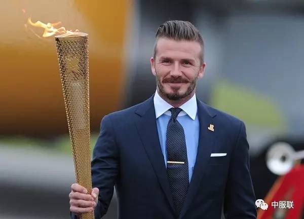 让我们仔细看看他的上半身。一般来说,衬衫的两个领口角度敞成120度,是最严肃、最正式的温莎领。温莎领,也叫敞角领,左右领子的角度在120度~180度之间。比如2012年伦敦奥运会,贝克汉姆身着西装,搭配异色温莎领衬衫担任火炬手。