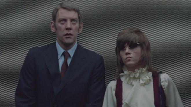 方达所有浮夸、自信的性感最终都变成了一场意志之战,这是一场与唐纳德·萨瑟兰饰演的古板的私家侦探之间的较量(他开着米色的旅行车,穿着熨烫过的睡衣,留着这位演员职业生涯中最短的发型)。最后谁是真正的胜利者还不清楚。就像布里说的:「当你习惯了孤独,有人却闯入你的生活,我猜这有点可怕。」