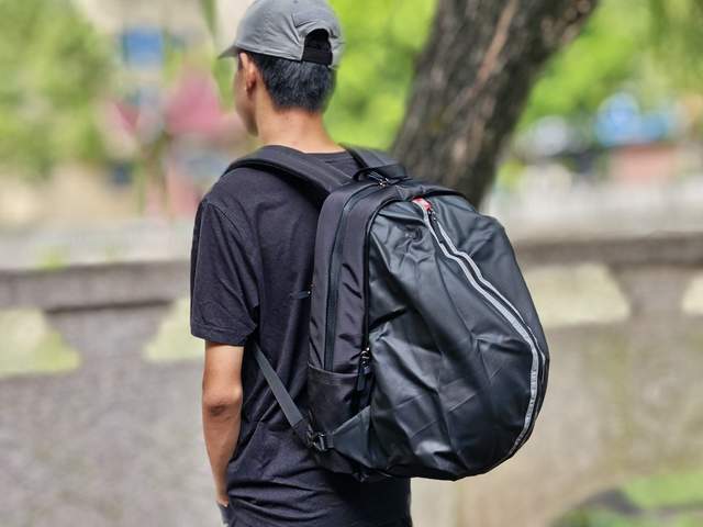 包身设计在我看了是简约百搭的,防泼水面料可以在我们出行的时候满足天气变化的需求,17L的基础容量可以说是对通勤而言是足够的,变形后的41L则带来了多场景适宜得到效果。