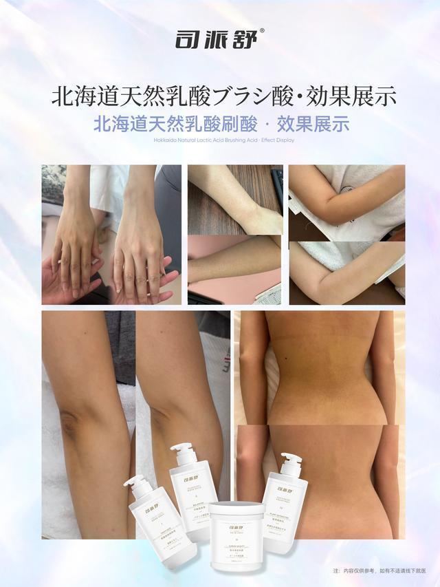 司派舒北海道全身刷酸,拒绝肤色不均真正解锁全身精致感!它不局限于局部护理,而是全方位改善肌肤质感,温柔代谢老废角质,把鸡皮、肤色不均逐一改善,让每一寸肌肤都慢慢褪去粗糙,让全身都像脸蛋一样细腻发光